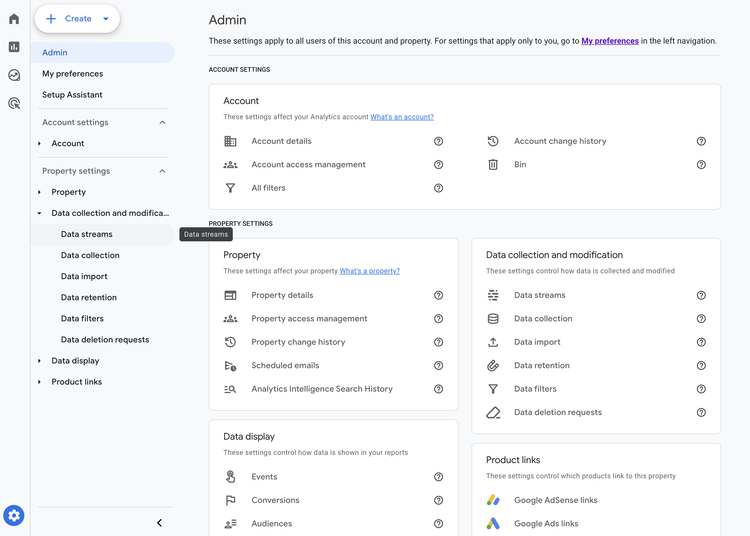 - Im Admin unter Data collection and modification auf Data streams klicken.