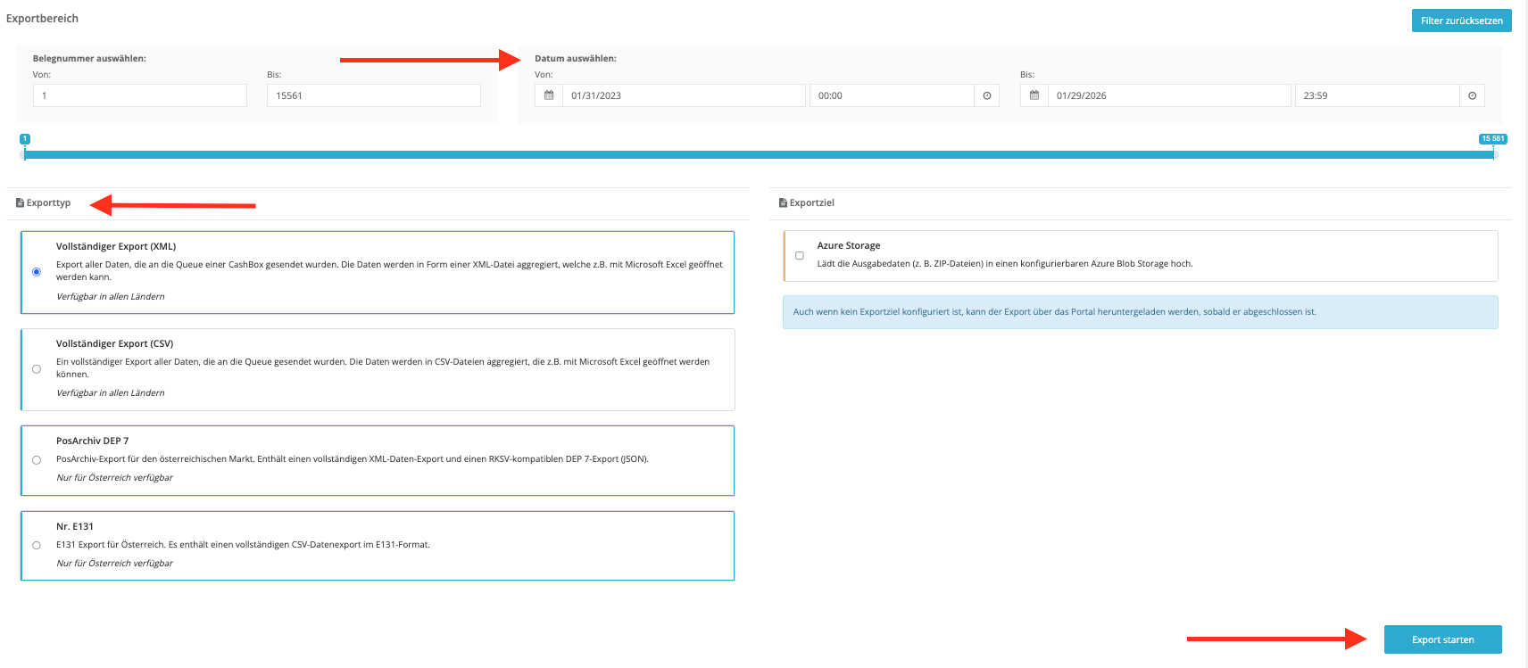 5. In dieser Maske kannst du nun das gewünschte Exportformat und den gewünschten Zeitraum auswählen.