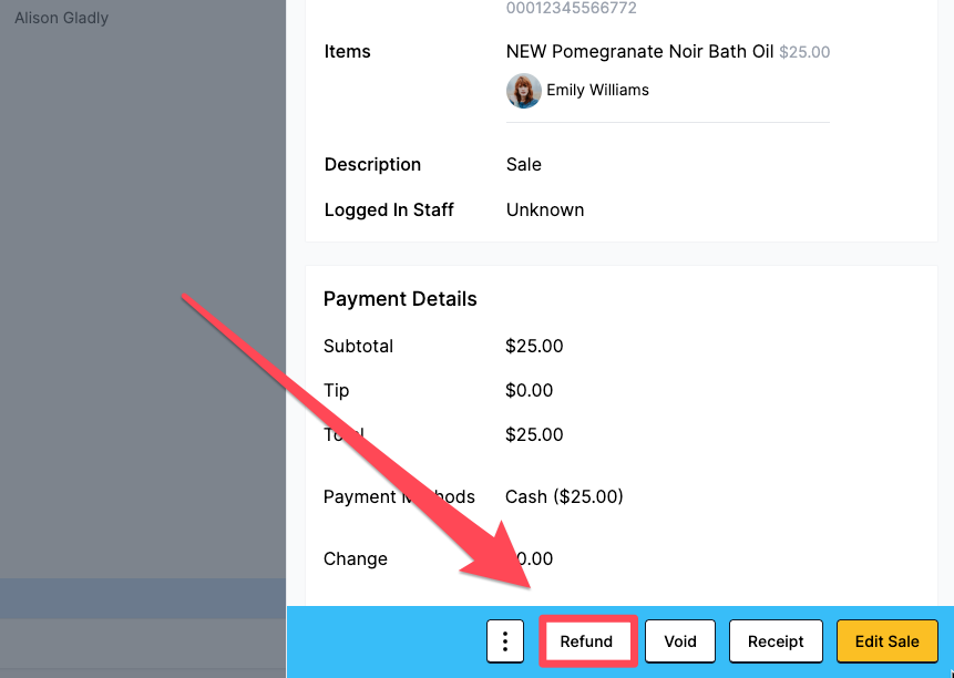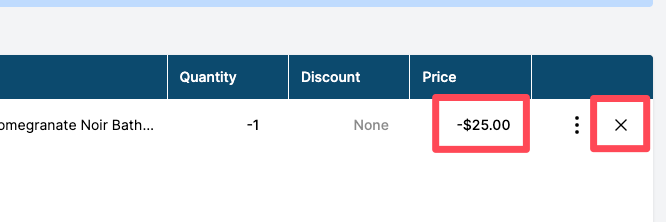 If you need to adjust the sale before refunding, click an item's price to adjust the refund amount or click 'X' to remove it from the refund.