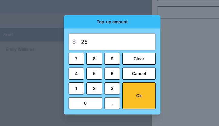 When prompted to enter the gift card amount, enter the total refund amount and select Ok.