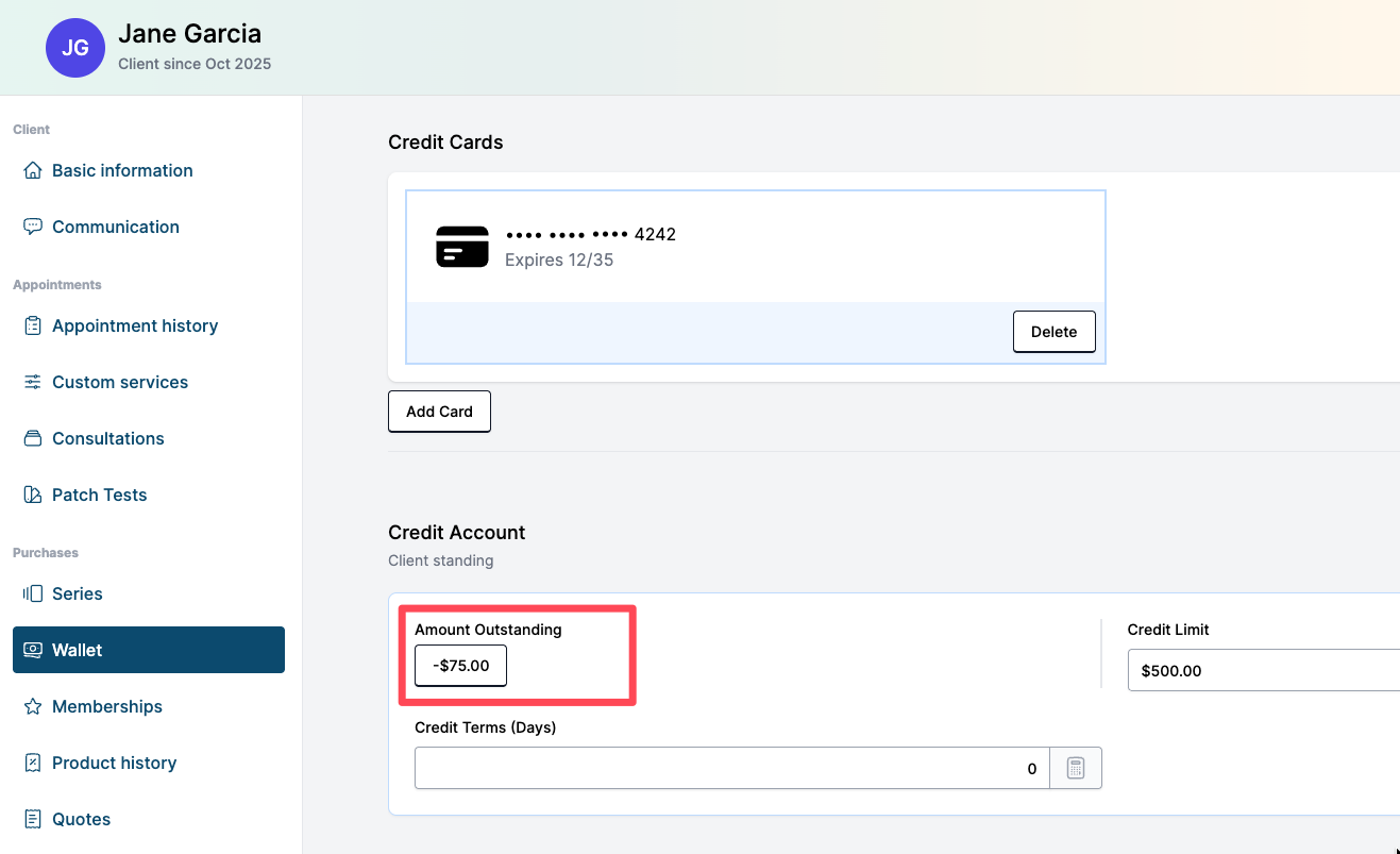 If the client had an outstanding balance from before, the deposit will be applied as a credit toward that amount.