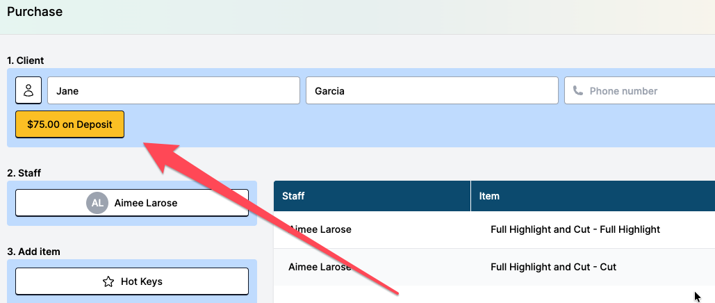 The next time the client pays for something, you will see their deposit amount displayed on the screen.