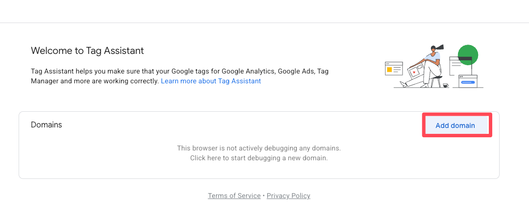 Go to https://tagassistant.google.com/ and select Add Domain.