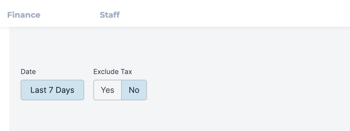 Staff members who only have access to their own performance will not have access to the Staff Name or Staff Category filters in the relevant dashboard.
