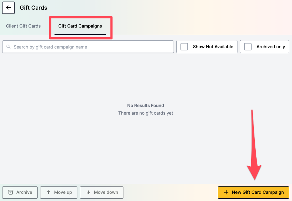 However, Gift Card Campaigns are set up per branch, so you will need to create the campaign separately in each location where you want to sell it.