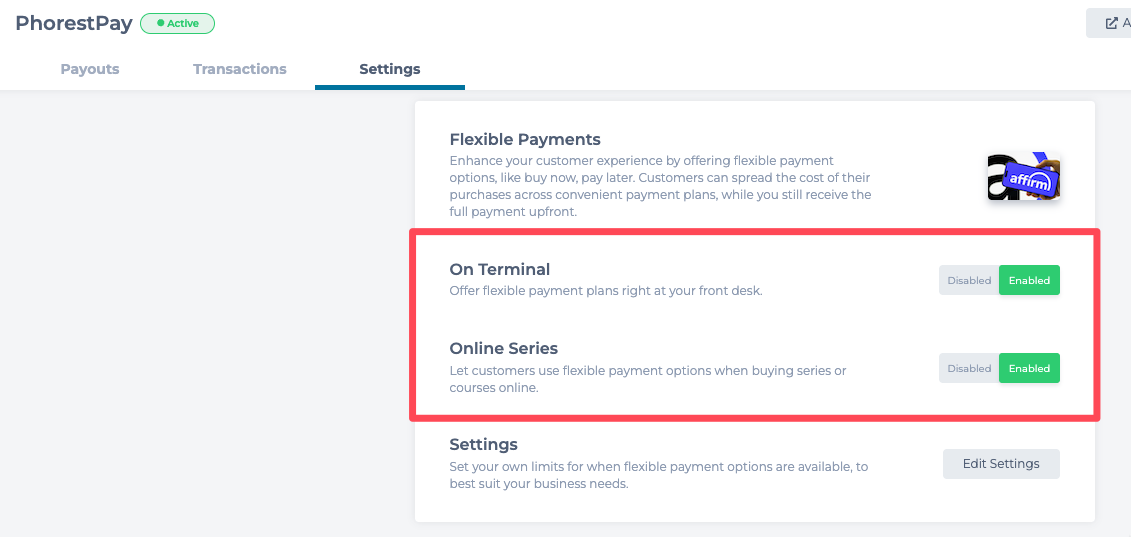 This guide will show you how to enable Buy Now, Pay Later (BNPL), allowing your clients to spread the cost of their services or products with flexible payment options through Affirm.