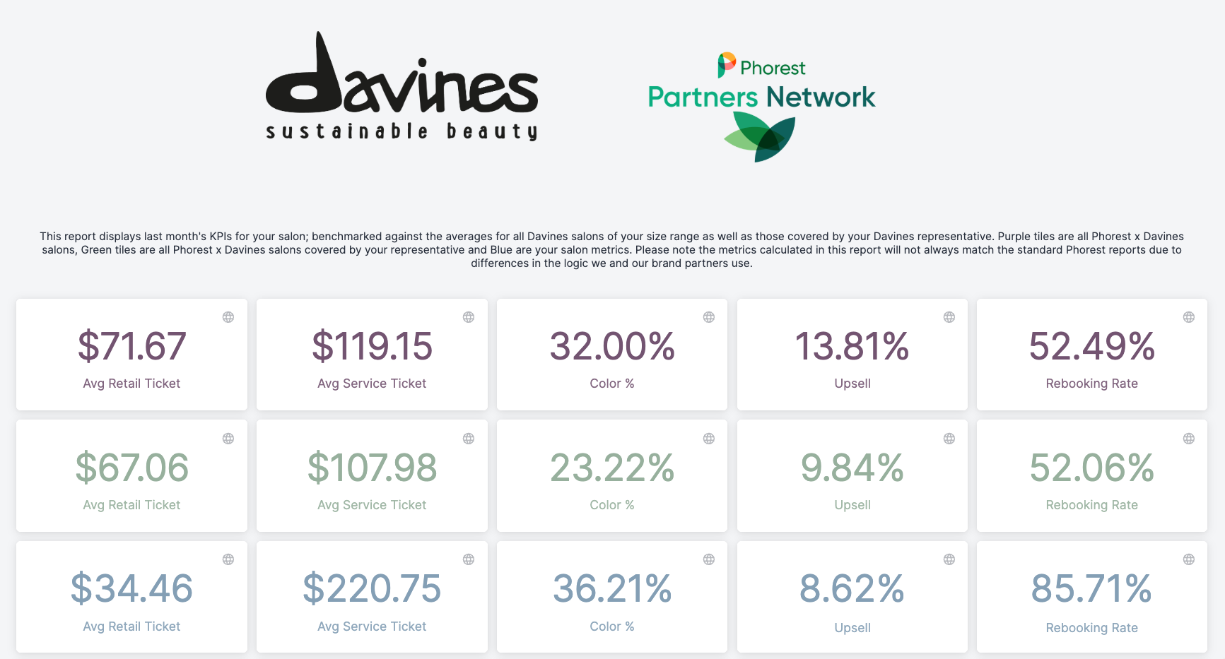 This dashboard is available, free of charge, to all Phorest clients in North America. If you are partnered with Davines and do not currently see this report in your Phorest system, please get in touch.