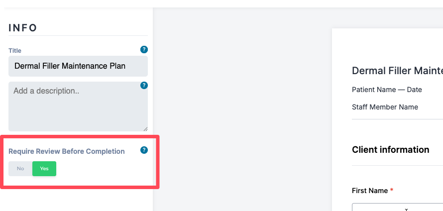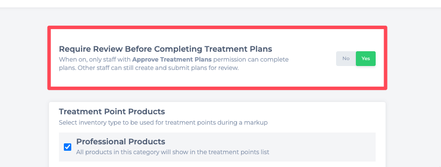 Next, decide which of your Treatment Plan templates require approval. You might want approval for treatments like injectables, but not for other procedures, such as facials.