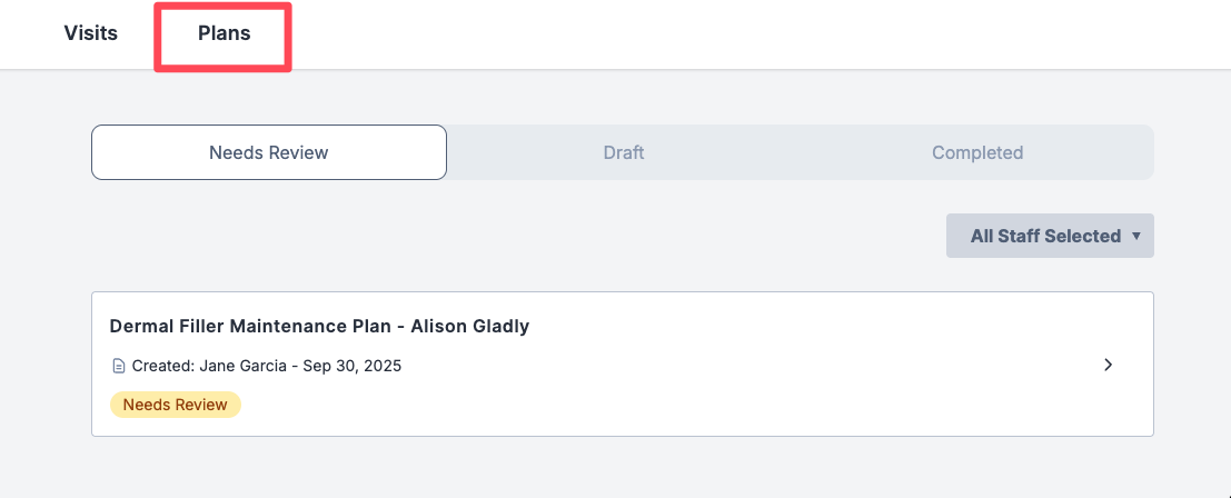 After a patient's treatment plan has been submitted from Draft for review, you can review and approve it by going to Manager > Consultations > View Consultations > Plans, where you will see a new Needs Review section, with all plans pending review and approval.