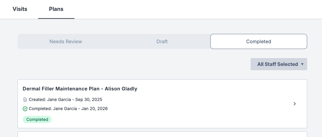 To review and approve a pending plan, select it. After it's been reviewed, select the Save and Complete button to submit as completed.