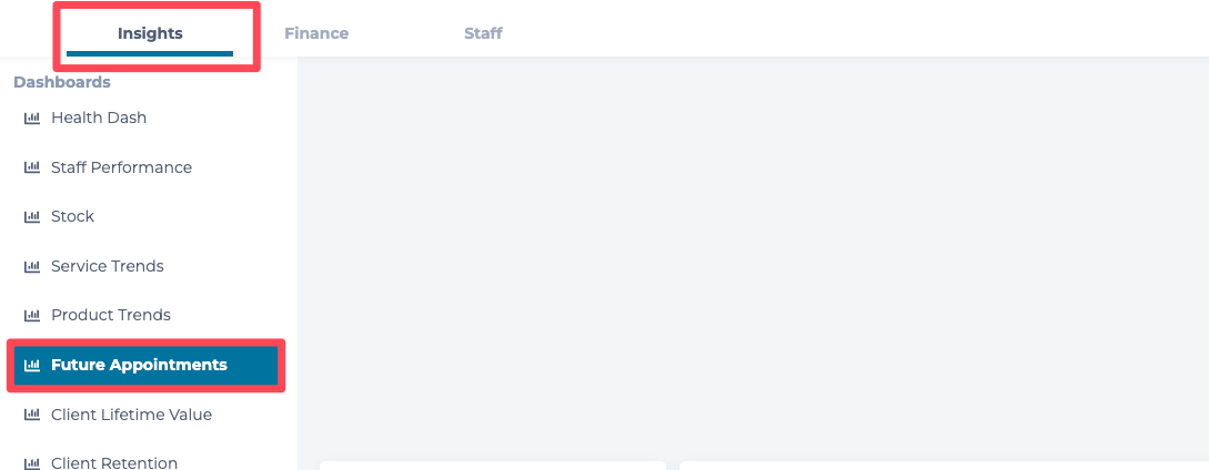 Go to Manager > Reports, and select the Future Appointments dashboard under Insights.