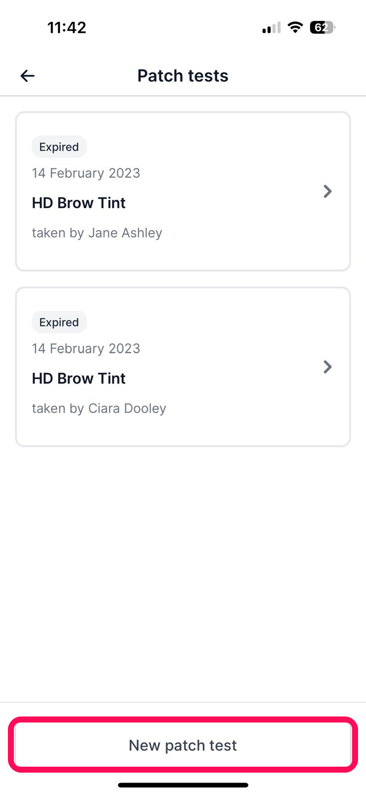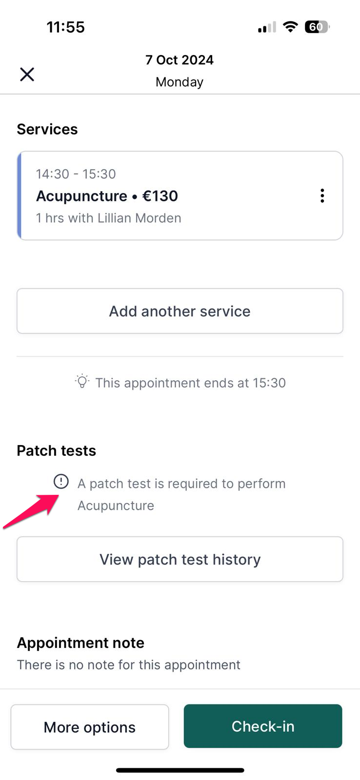 Note: A warning appears when booking appointments through the app if that service requires a patch test.