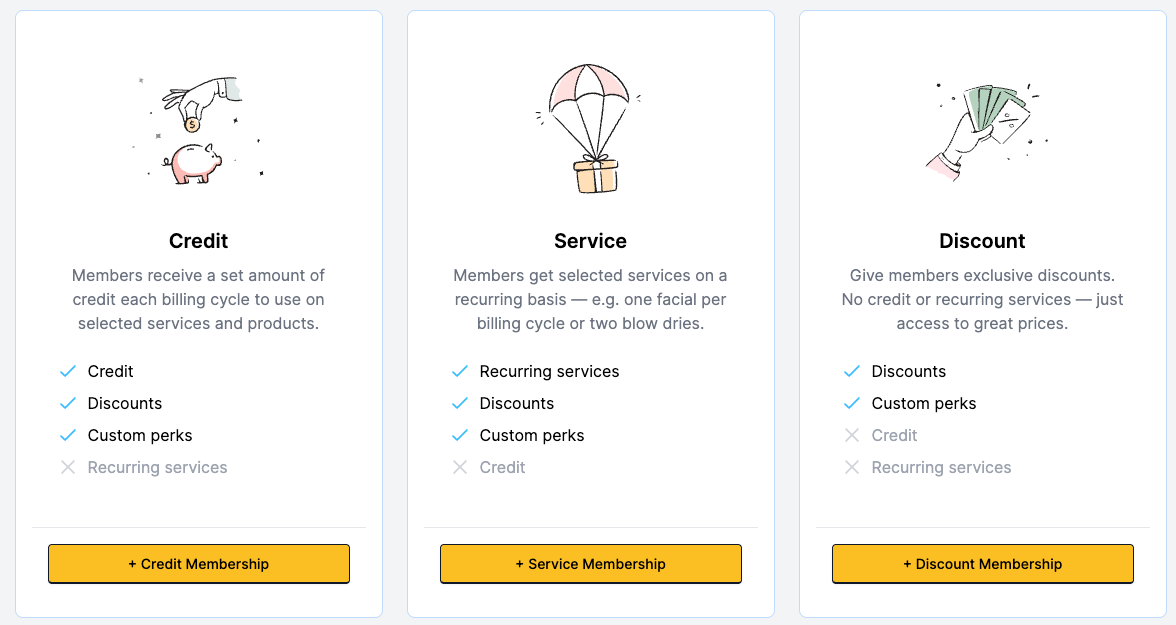Not sure which Membership to create? Click here for a detailed guide on each type, including their ideal businesses and key benefits.