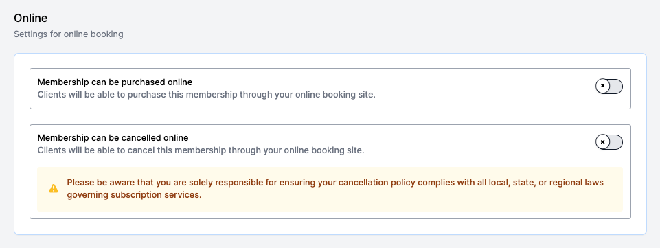 Next, choose whether your Membership can be purchased online or not.