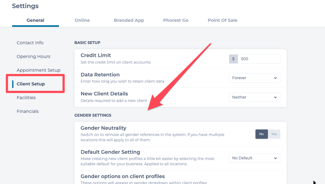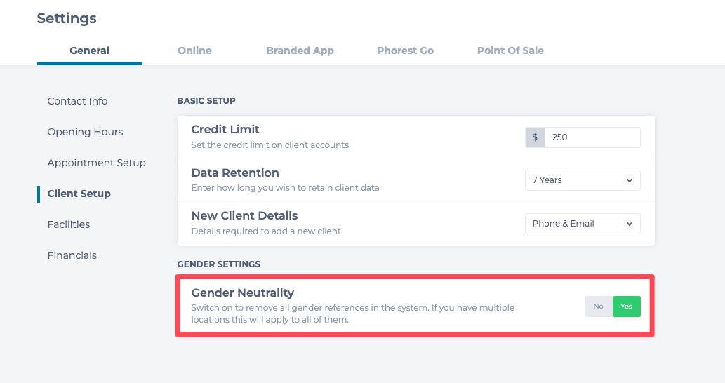 To remove gender from your Phorest system entirely, enable the Gender Neutrality setting.