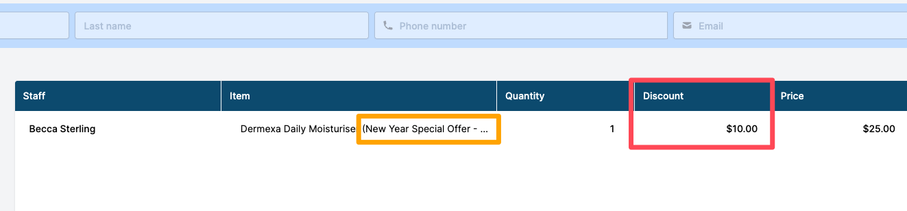 The special offer discount will automatically be applied on the Purchase screen as soon as you add the offer's products to the sale.
