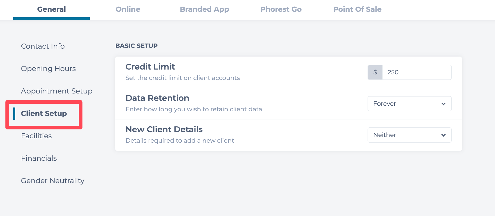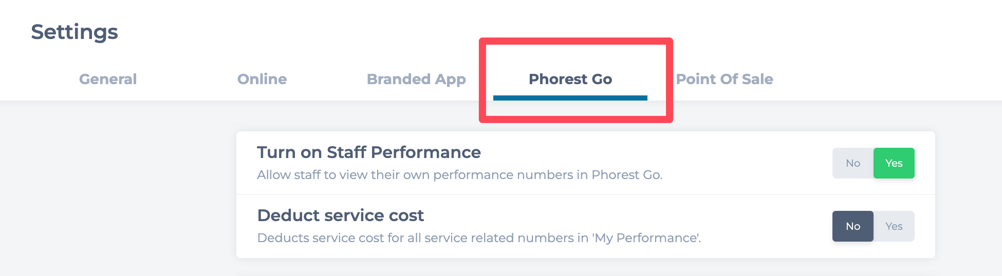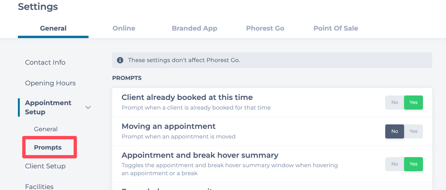 Phorest Go Settings