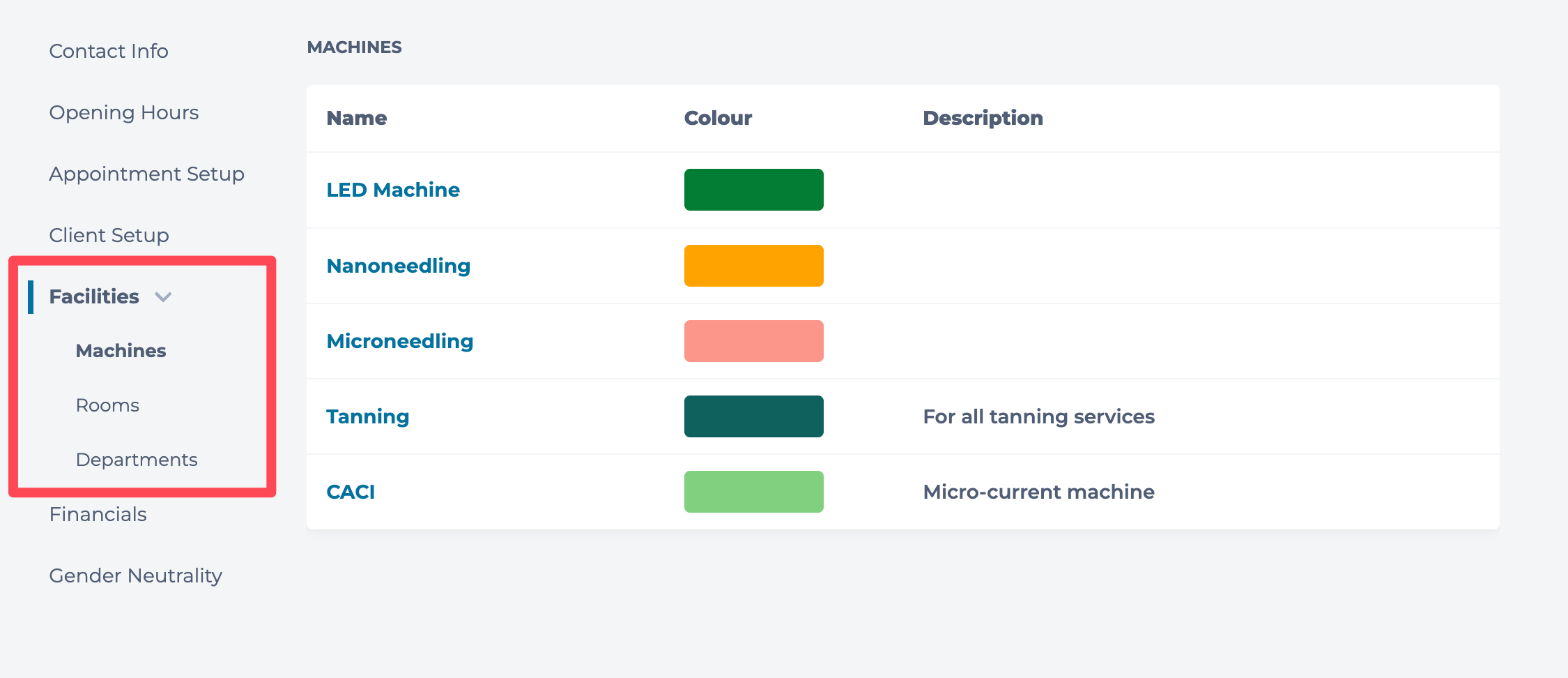 This section will allow you to create and edit Machines, Rooms & Departments.