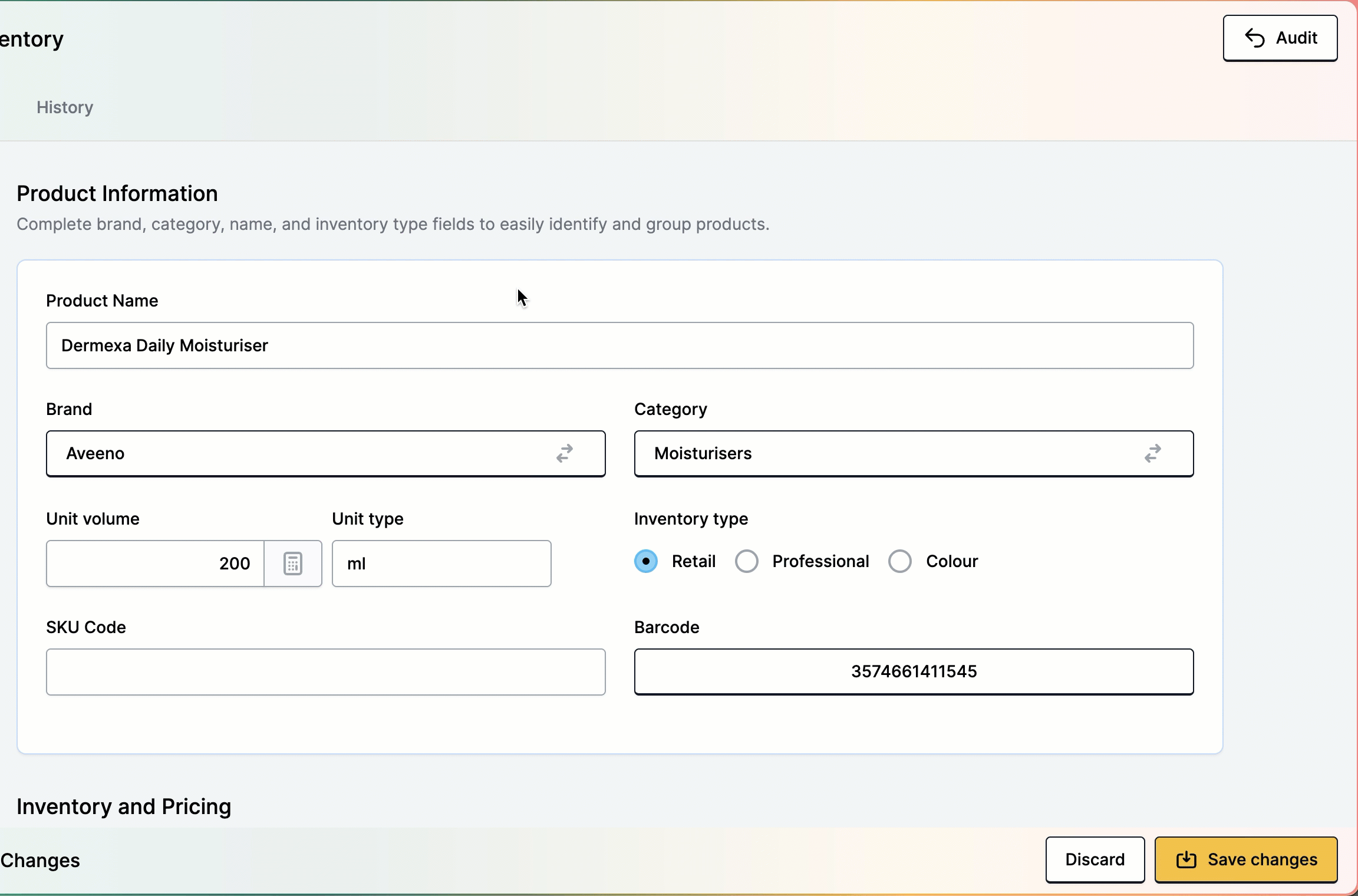 Jos tuotteellasi on useampi kuin yksi viivakoodi, voit lisätä toisen viivakoodin klikkaamalla tuotteen nimeä muokataksesi sitä ja sitten klikkaamalla Viivakoodi-painiketta lisätäksesi lisää viivakoodeja.