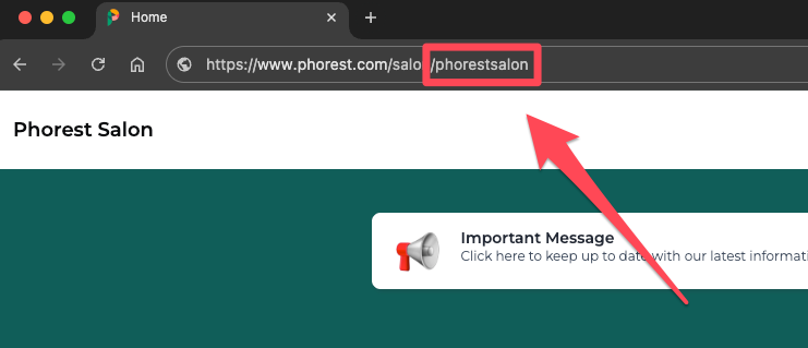 Liitä linkki osoiteriville (internet-selaimen yläreunaan) ja paina Enter. Tämä avaa normaalin nettiajanvaraussivusi.